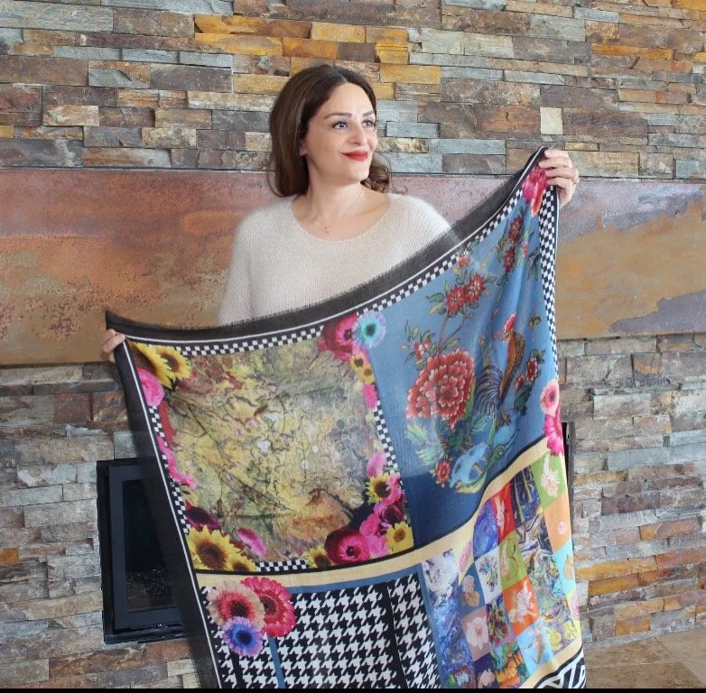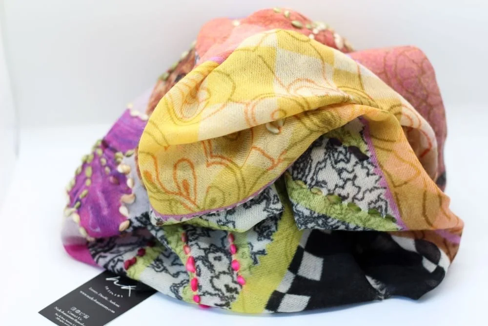 NEW ARRIVAL- Ebru Art- Artsy Pattern Silk Modal Scarf with Embroidery